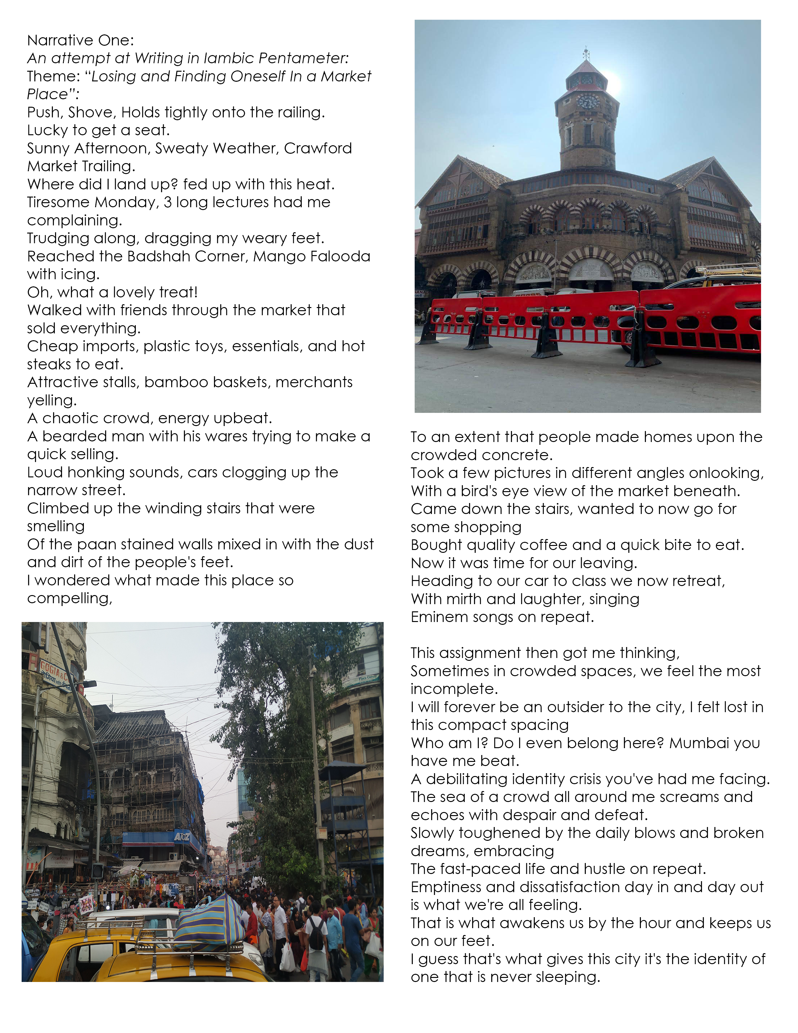 I chose to use a very critical and negative narrative of exploring the journey through the lens of an outsider to the city and the intimidation one feels coming from a relatively smaller town and slower-paced life compared to Mumbai- a big city with a fast-paced lifestyle.