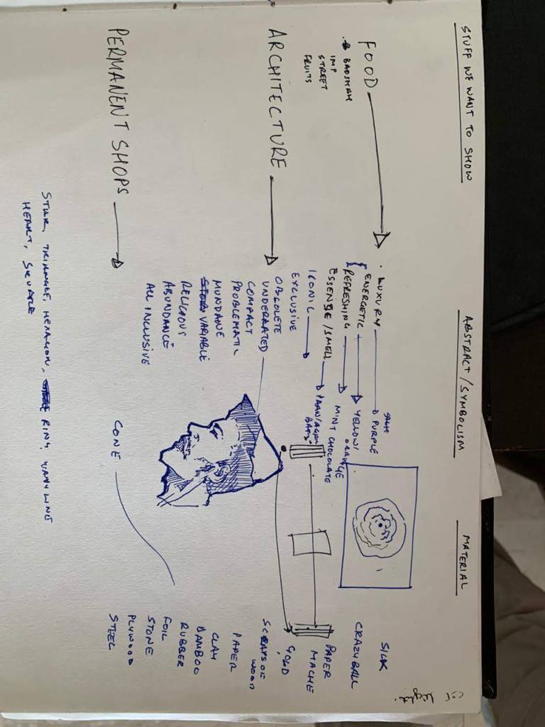 In the following Integrative Studio we were appointed to create a interactive model to represent all of our chosen aspects through the common lens of mapping that we had created in the previous class. We then sat up together and started prototyping our model using file card and started drawing up mock sketches to come up with the conceptual idea of the model and its dimensions. We then also began ideating the material list to fit the correct representation of our aspects. This class was a heated class with many debates regarding the material list and the look and the feel of the model. We then came to conclusion and decided on common ground to make the model like a box along with a triangular roof encompassing all our aspects in detail within the box.